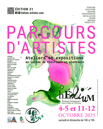 Programme complet et carte interactive disponibles en suivant ce lien : https://helium-artistes.com/21e-parcours-dartistes-helium-4-5-et-11-12-octobre-2025/